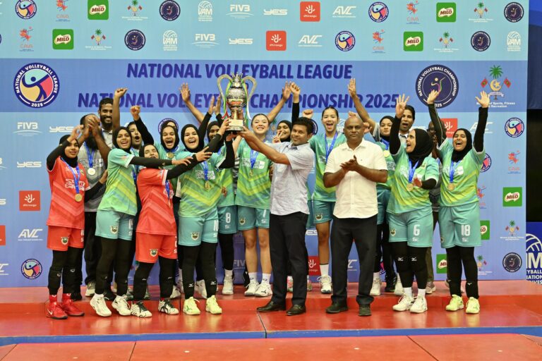 The ceremony concluded with Vice President Latheef presenting the championship trophy, gold medals, and a certificate to Club WAMCO, officially marking their championship win and closing the Women’s Division of the 2025 National Volleyball Championship in style.