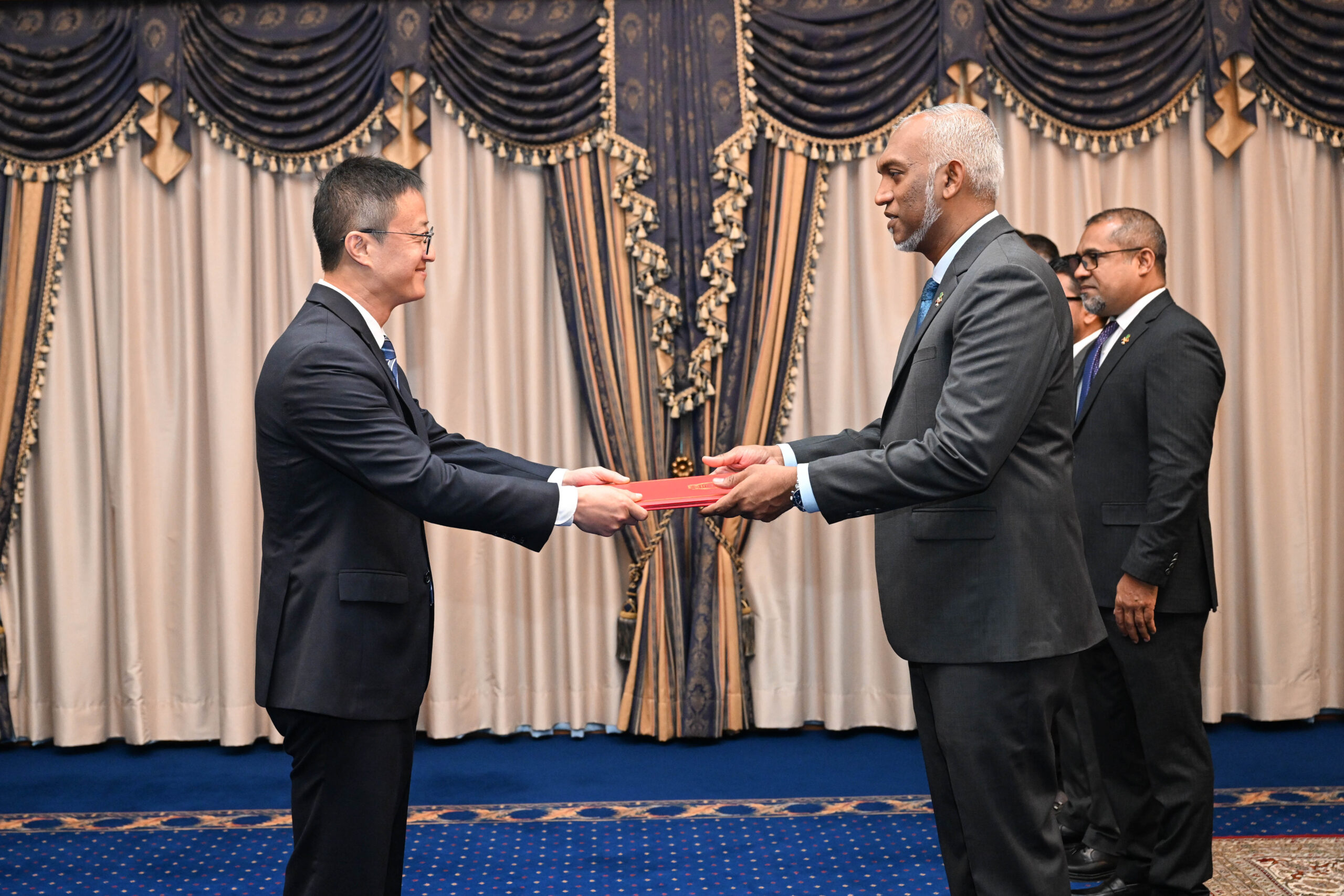 His Excellency Kong Xianhua, the newly appointed Ambassador of the People’s Republic of China to the Maldives, officially presented his Letters of Credence to President Dr Mohamed Muizzu at a formal ceremony held this morning at the President’s Office.