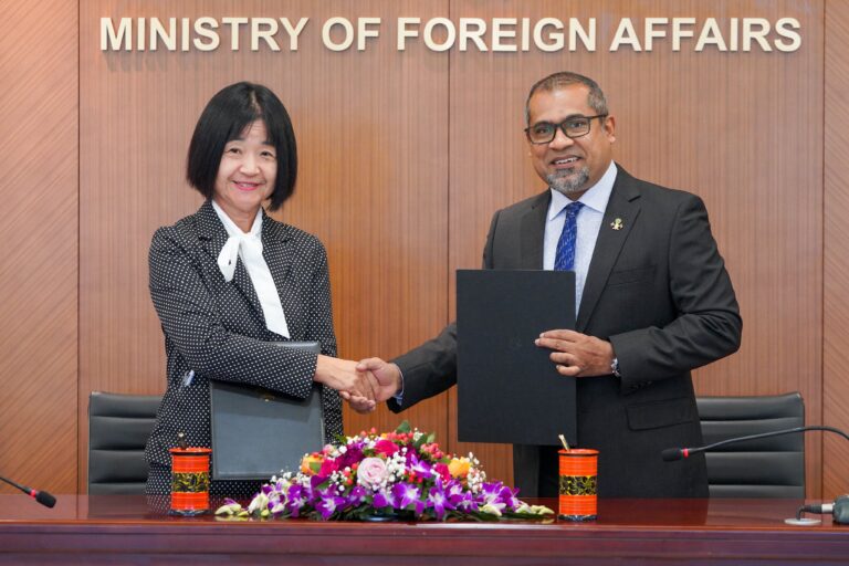The signing ceremony was held in Malé, with His Excellency Dr. Abdulla Khaleel, Minister of Foreign Affairs of the Maldives, and Her Excellency Ishigami Rumiko, Ambassador of Japan to the Maldives, signing on behalf of their respective governments.