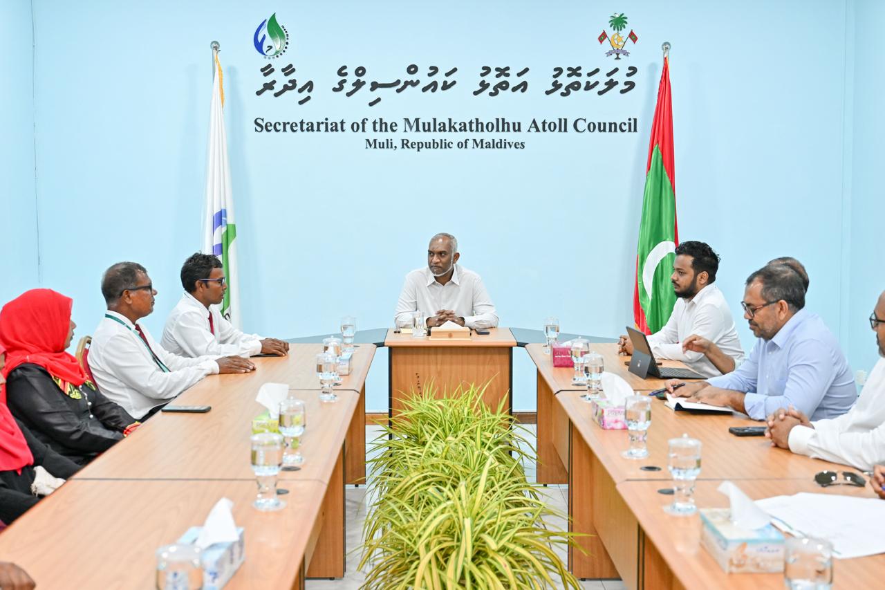 The meeting took place at the Secretariat of the Meemu Atoll Council, in conjunction with the President’s visit to inaugurate Muli Airport.