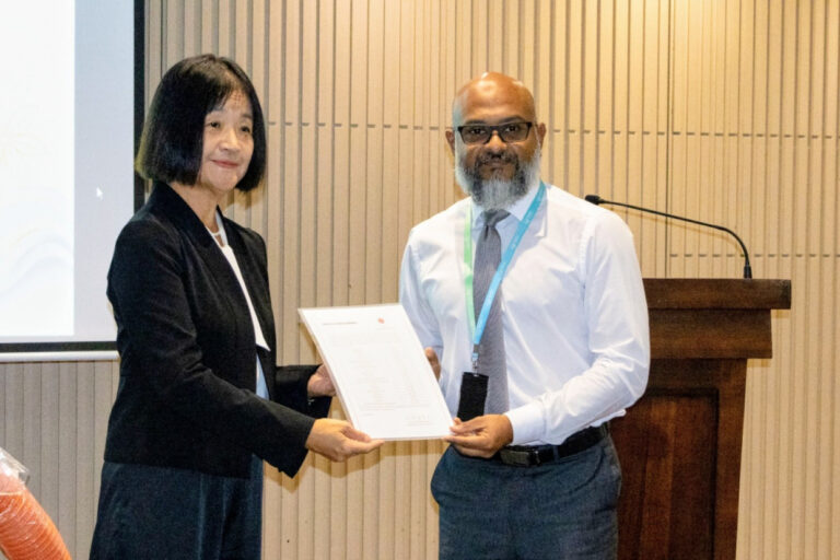 Ambassador of Japan to the Maldives, Ishigami Rumiko, formally handed over the donation at a ceremony held on Sunday. NDMA Chief Executive Officer Hisan Hassan accepted the equipment on behalf of the authority.